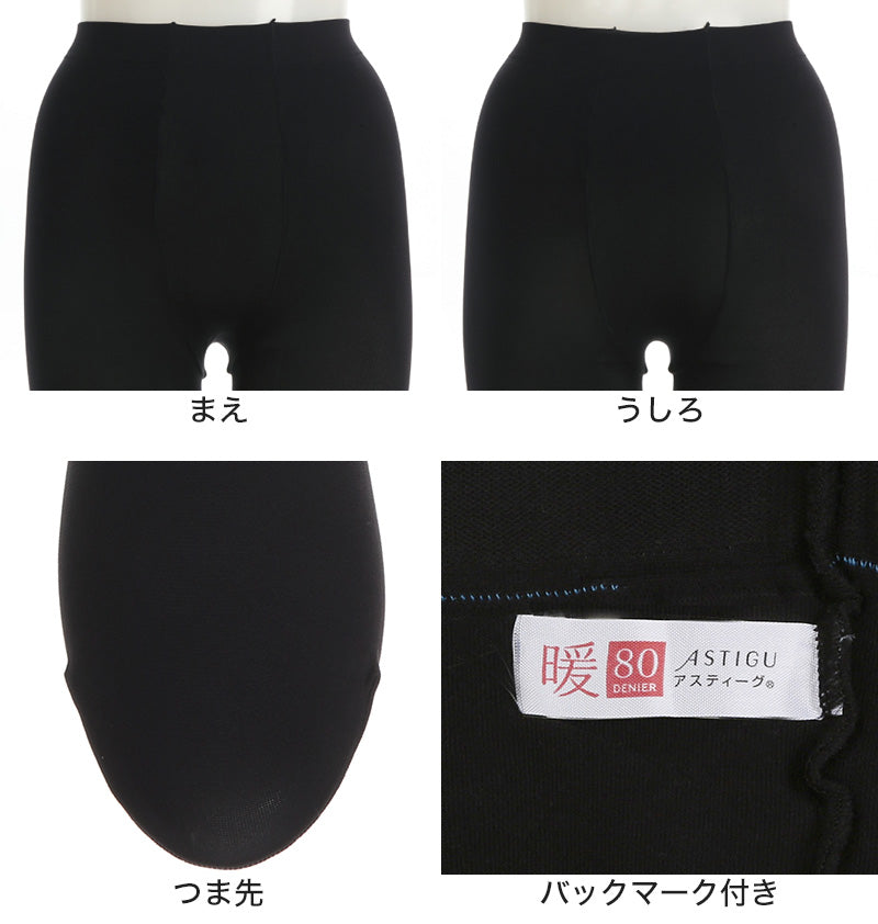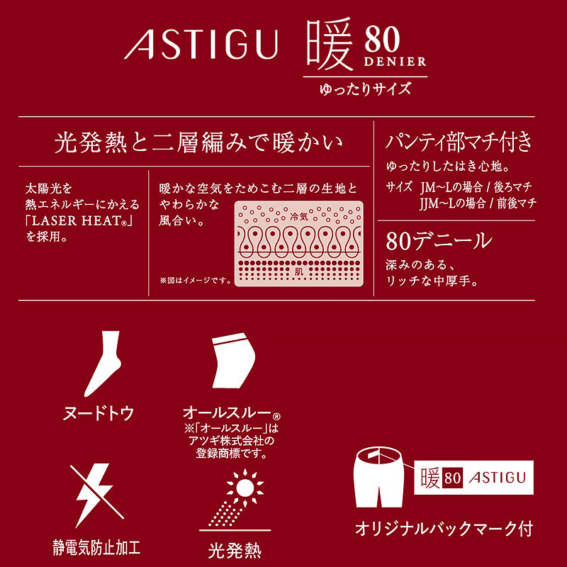 アツギ アスティーグ 暖 発熱タイツ 80デニール やわらかい JJM-L