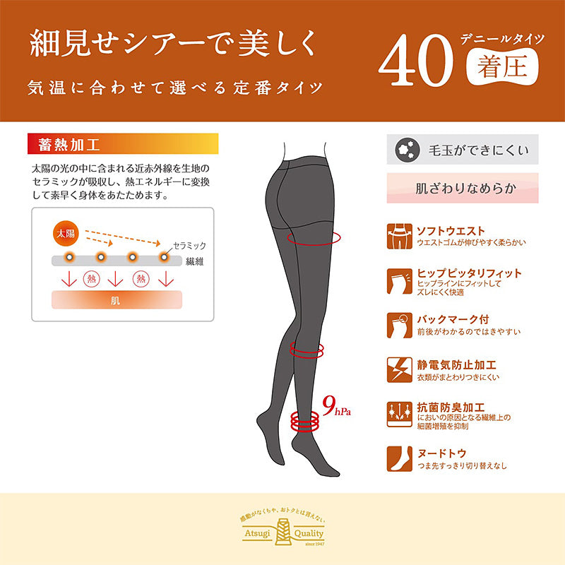 ATSUGI/ATUGI/atsugi/あつぎ/ATSUGI/TIGHTS/レッグウェア/レッグウエア/着用圧/引きしめ/細く見せる/細見せ/タイツ/暖かい/温かい/あたたかい/ヒートタイツ/heat/ホットタイツ/hot/防寒/消臭/40D/2足組/2p/beige/black/秋用/冬用/くしまむらファンにおすすめ l-tig-40 l-tig-pre FP40902P/at534