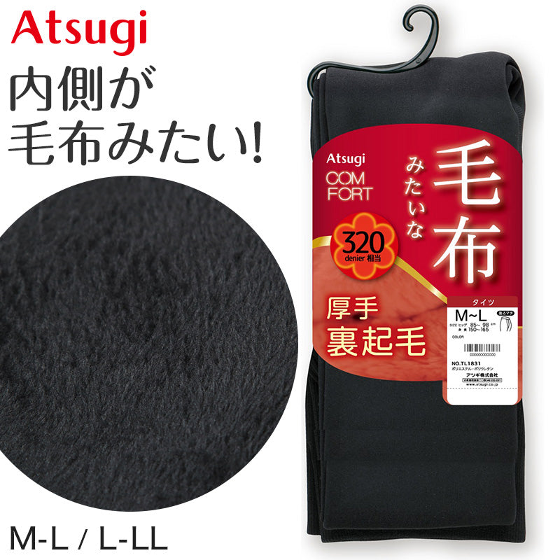 アツギ/コンフォート/毛布タッチ/フリース調/320デニール相当/裏起毛タイツ/atsugi/atugi/ATUGI/あつぎ/コンフォート/Comfort/レディス/婦人用/女性/320denier/暖かい/あったかい/厚地タイツ/裏起毛/つま先スルー/冬/防寒/しまむらファンにおすすめ l-tig-100 l-tig-ura TL1831/AT/tl1456