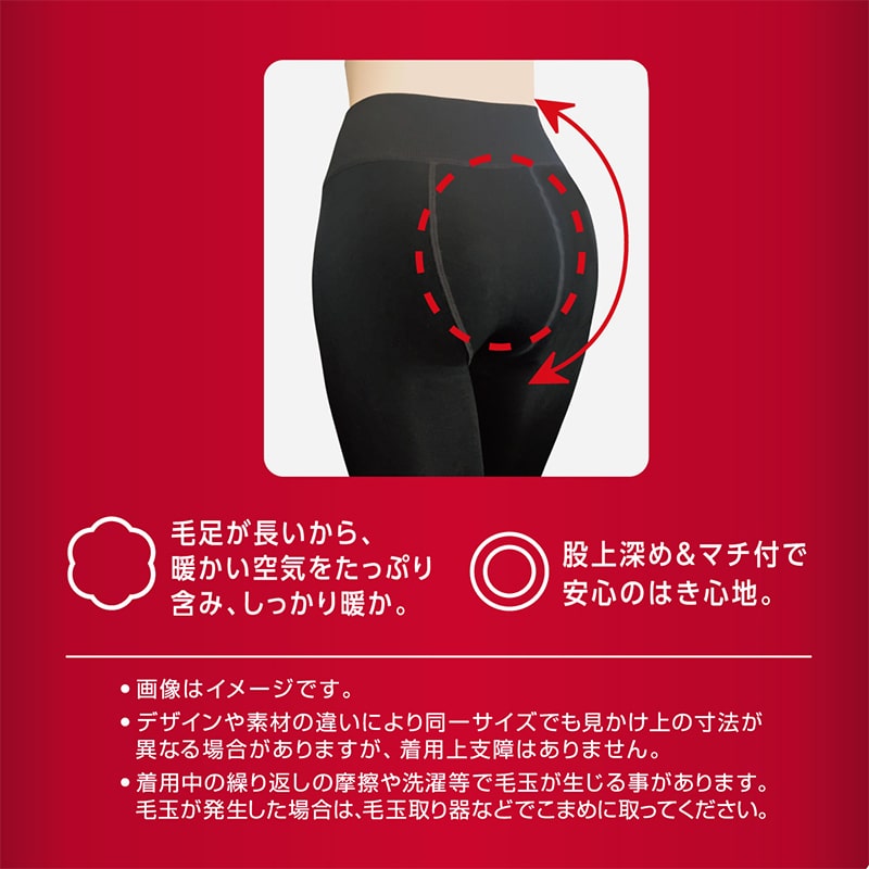 やわらか毛布タッチ(毛足の長いフリース調素材)/太幅ウエストリブ/アウトサイドテープ/後ろマチ付き/フラットシーマ/股上深め/バックマーク付き/厚手(厚め)