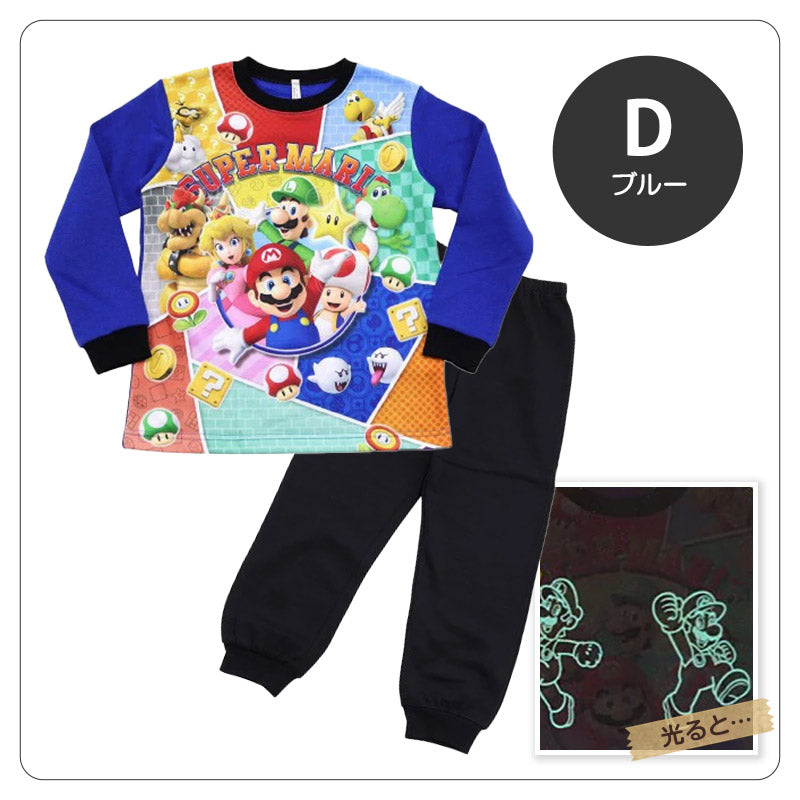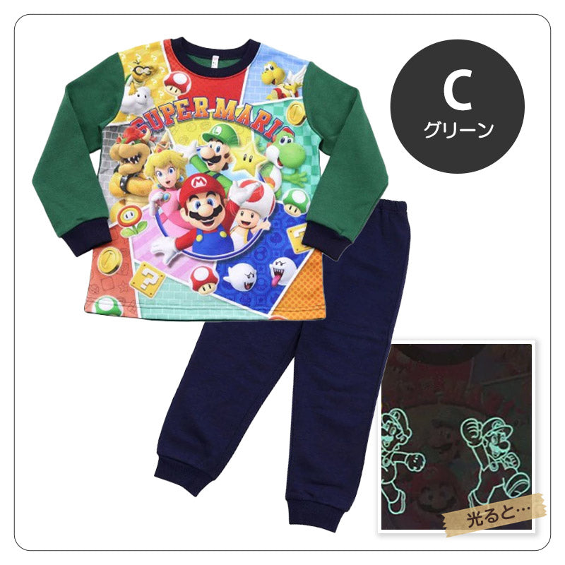 光るパジャマ マリオ パジャマ 裏起毛 長袖 男の子 スーパーマリオ 上下セット 110cm~140cm