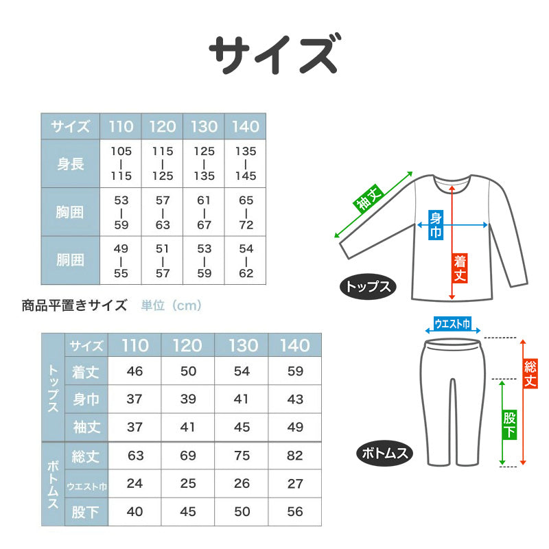 サイズは、110cm、120cm、130cm、140cmの4サイズございますので、お子様のサイズに合わせてお選びください。