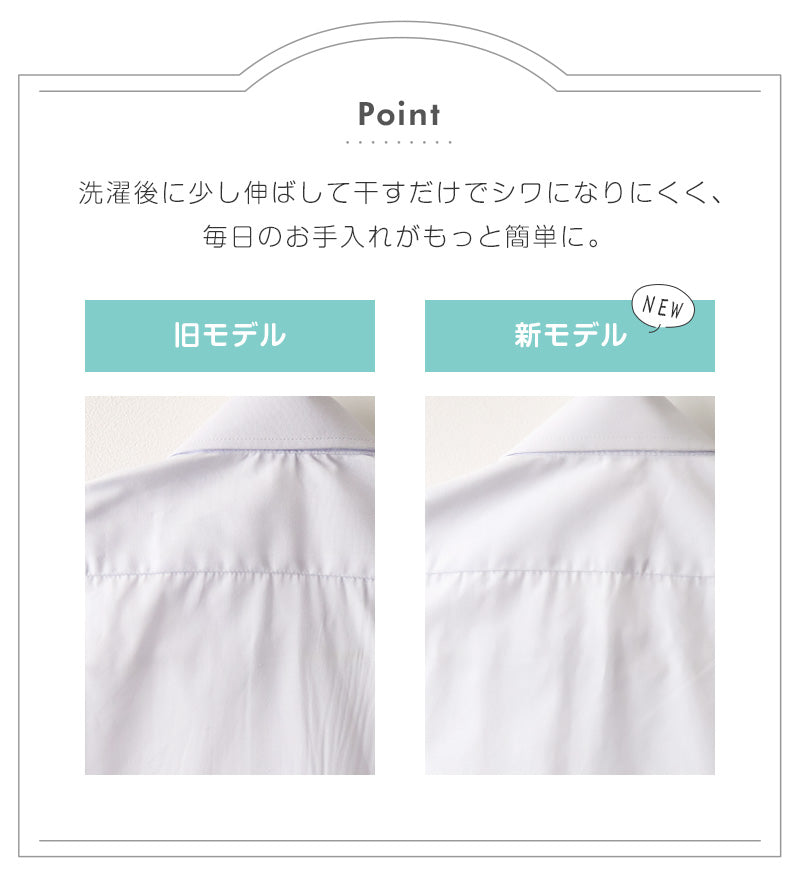 ママさんたちのお声をもとに、当社で大人気のオリジナルスクールシャツがリニューアル。(2025年9月下旬)