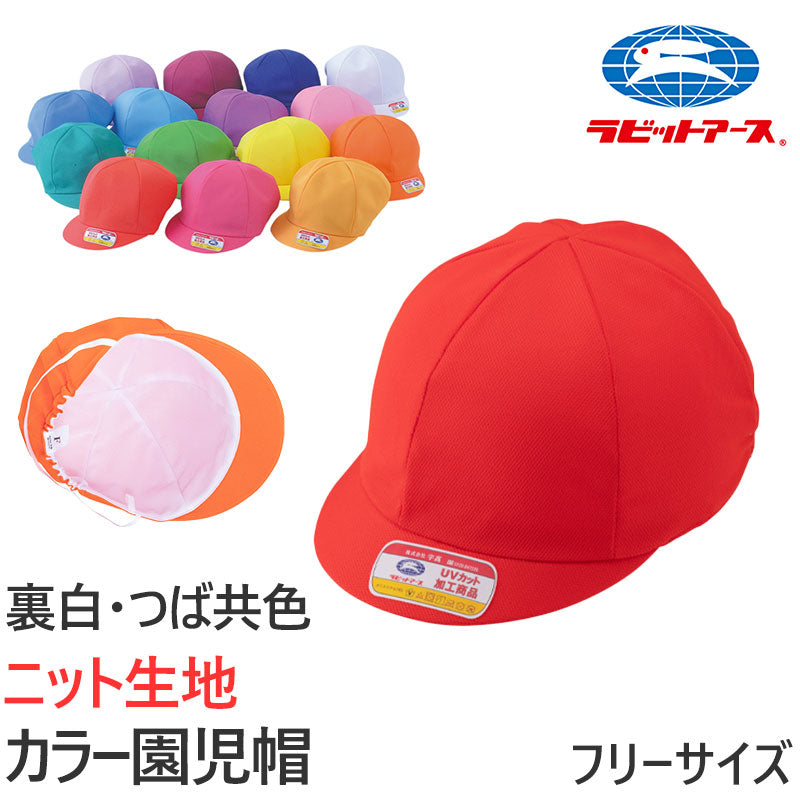 園児帽子 男の子 女の子 ゴム付き キャップ カラー豊富 紫外線対策 定番 赤 白 青 黄 ピンク ニット生地 ポリエステル フリーサイズ