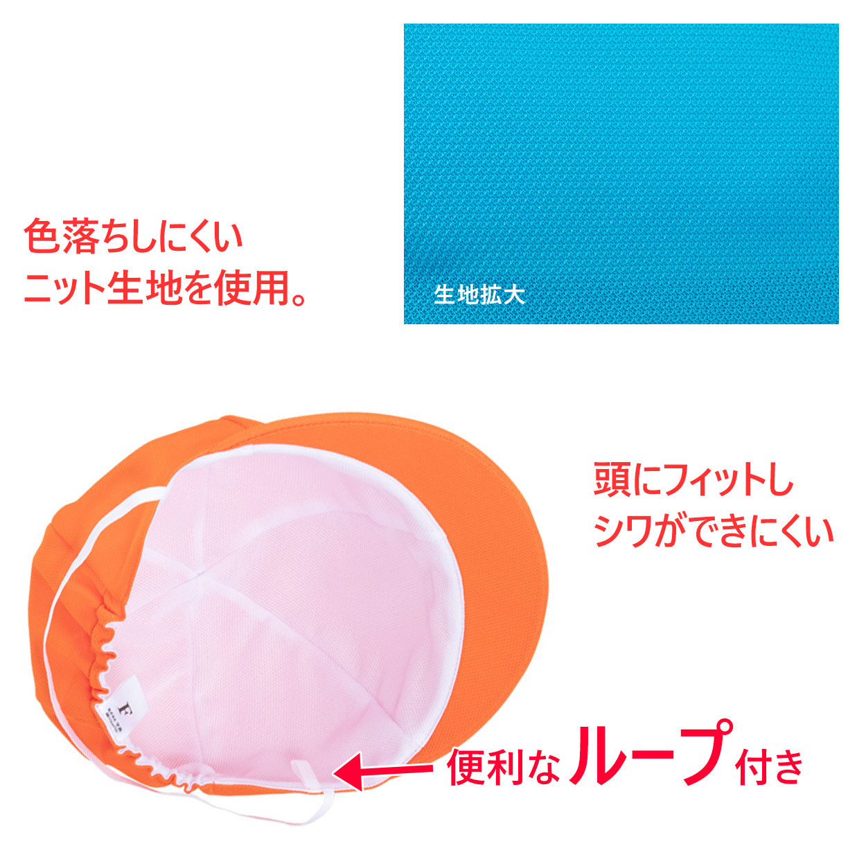 あごゴム付き 通気性 ニット生地 厚手 UV対策 UVカット加工 つばあり ループ付き