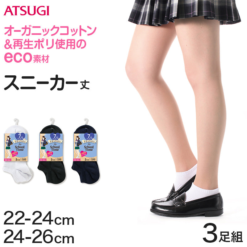 ATSUGI/School-Time/スクールタイム/SchoolTimeスニーカー丈/7cm丈/3P/22cm/22.5cm/23cm/23.5cm/24cm/24.5cm/25cm/25.5cm/26cm/しまむらファンにおすすめ l-soc-sn sc-goods-soc LP78053/AT/at247-g