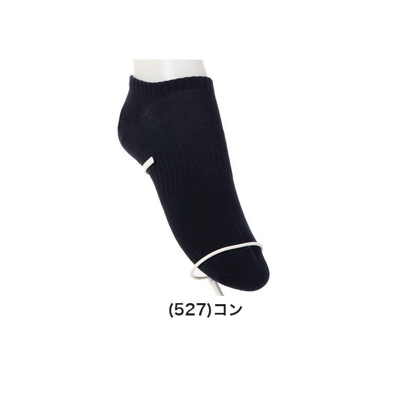足のニオイが気にならない「抗菌防臭」付き。また、動いても靴下がずり落ちにくいので、よく動くときにおすすめ。