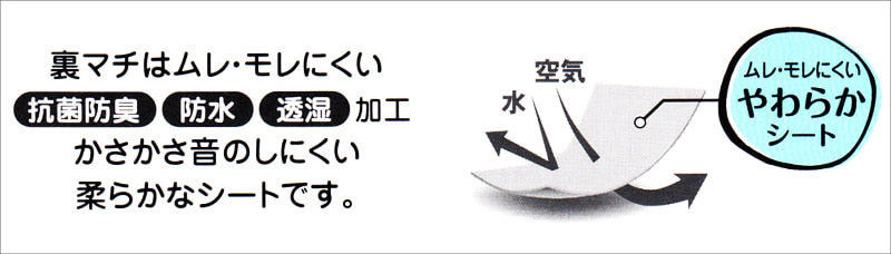 綿混ベア天竺/かさかさ音のしにくい裏マチシート(抗菌防臭加工/防水加工/透湿加工)/ナプキンがしまえるWポケット付き