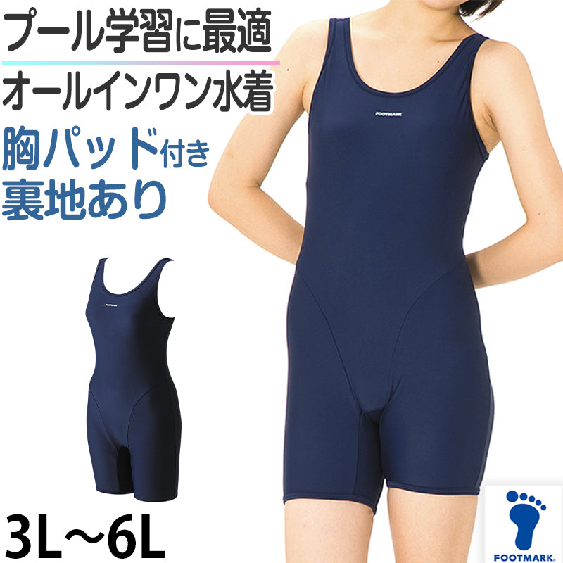 ワンピース水着 スクール水着 オールインワン 大きいサイズ ガールズ レディース 裏地あり 女性 フィットネス パッド付き 水泳 スイミング 高校生 小学生 中学生 フットマーク 学校 子供 女子 プール学習 3L~6L