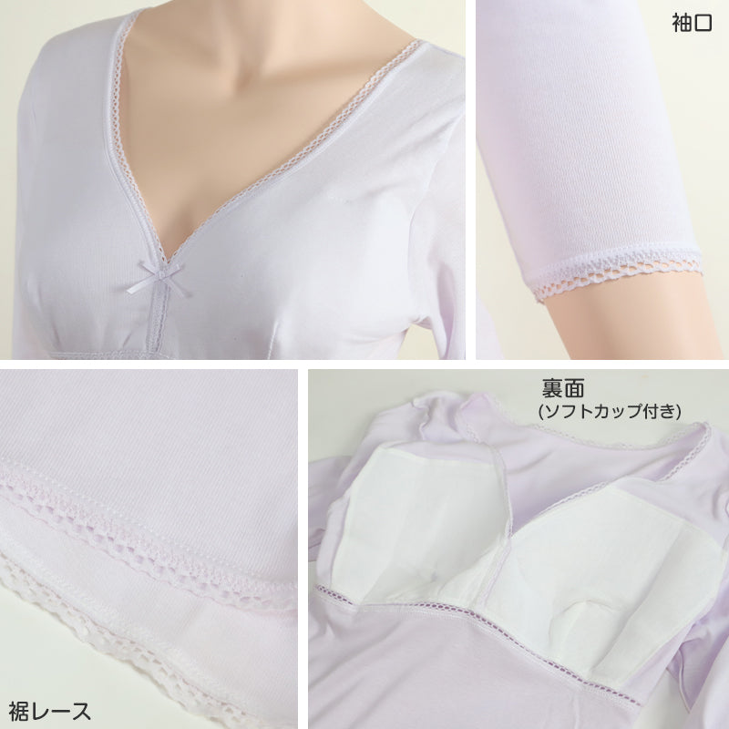 締め付け感なく楽な着心地。婦人用 カップ付き8分袖インナーです。