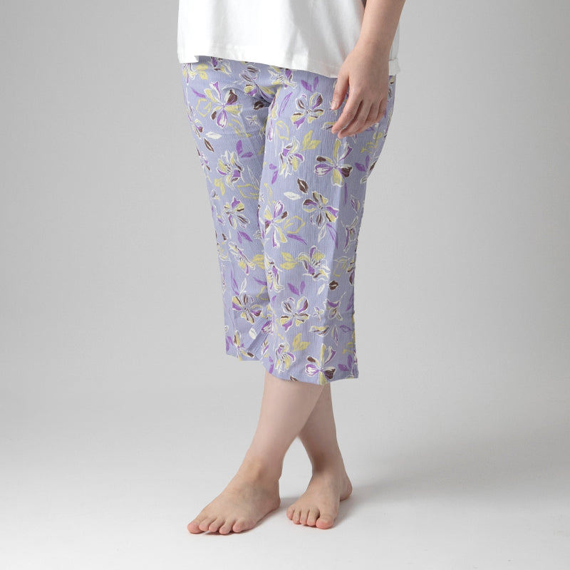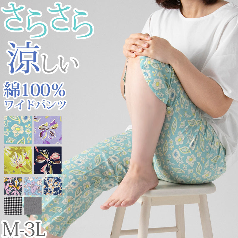ステテコ レディース 夏 部屋着 綿100% クレープ ワイドパンツ パジャマ 夏用 ルームウェア ひざ下 おしゃれ かわいい M~LL