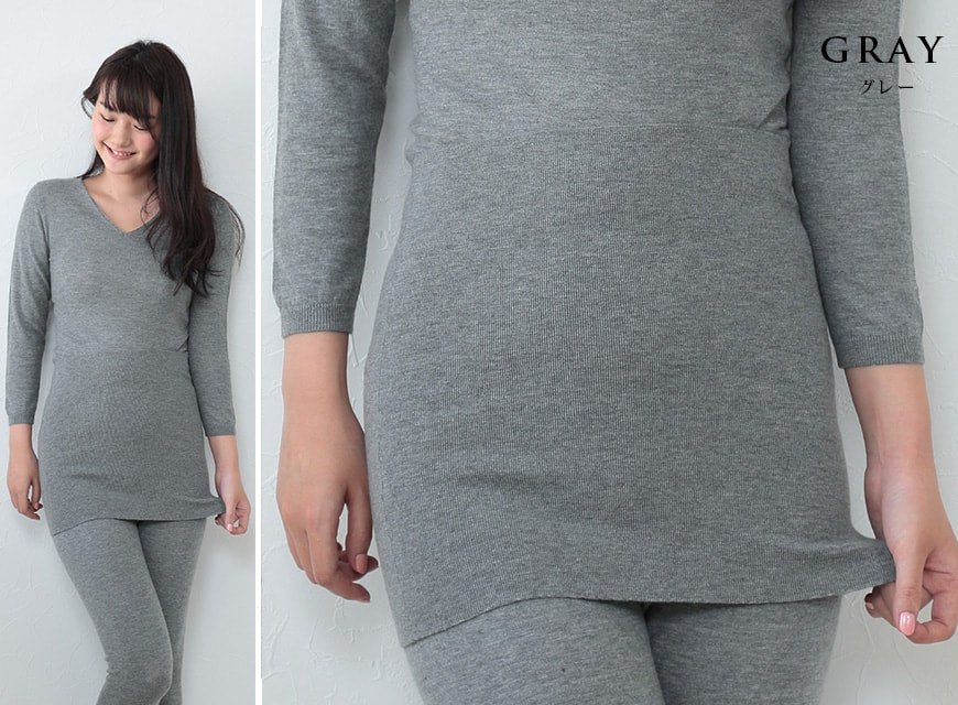 梳毛のカシミヤ100%で、下着は天竺編み(腹巻は総針編み)に仕上げています。