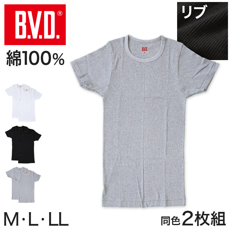 BVD メンズ インナー 半袖 リブクルーネックTシャツ 2枚組 M~LL
