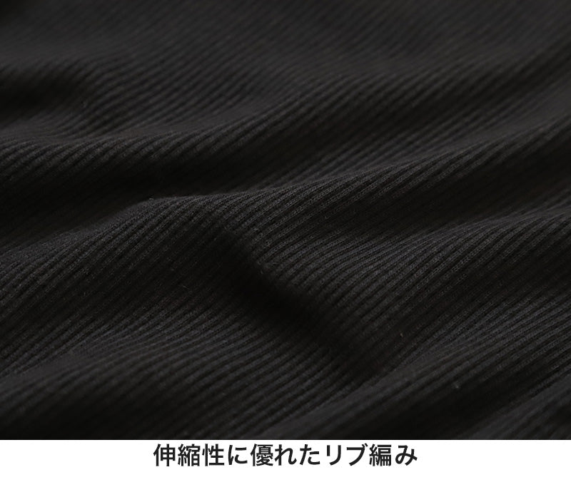 特に横への伸縮性に長けたリブ編み仕様で、締めつけを感じにくく、ストレスフリーな着心地。