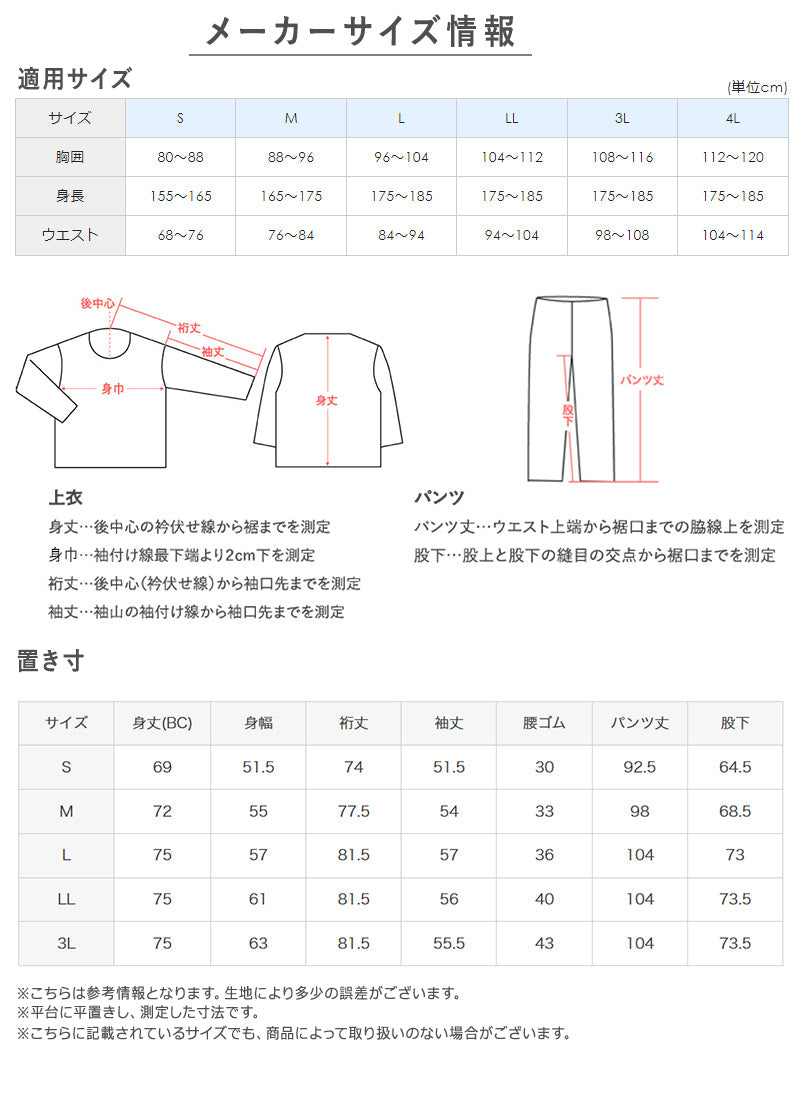 - S(身長:155~165cm 胸囲:80~88cm ウエスト:68~76cm)