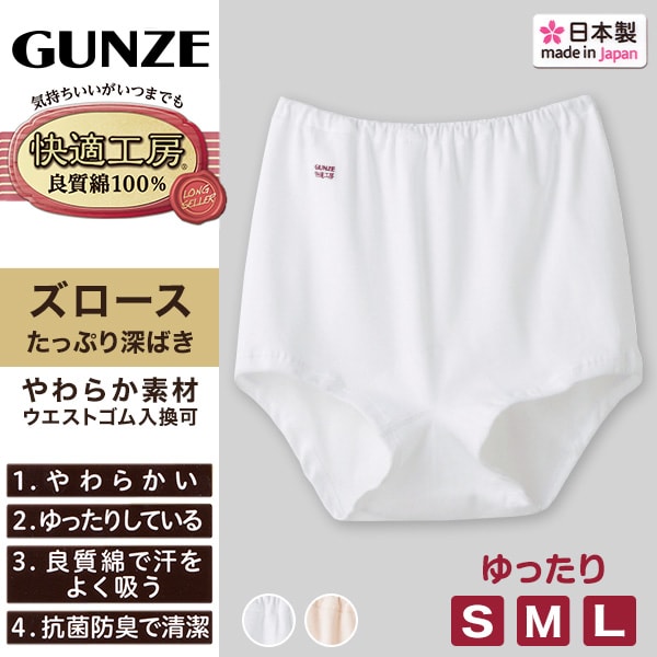 グンゼ 快適工房 ズロース 綿100% 深履き ゆったり ゴム入れ替え可 レディース パンツ シニア S~L