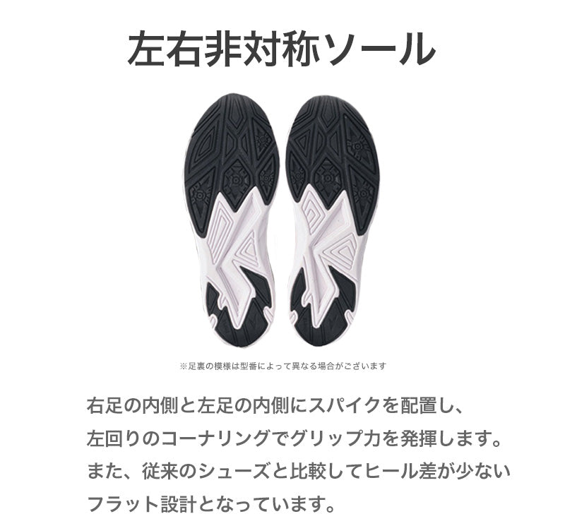 ・左回りのコーナーリングで威力を発揮する「左右非対称ソール」