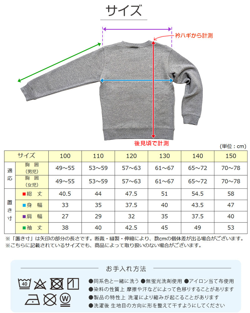 「子供用 綿100% 裏パイル スウェット トレーナー」です。