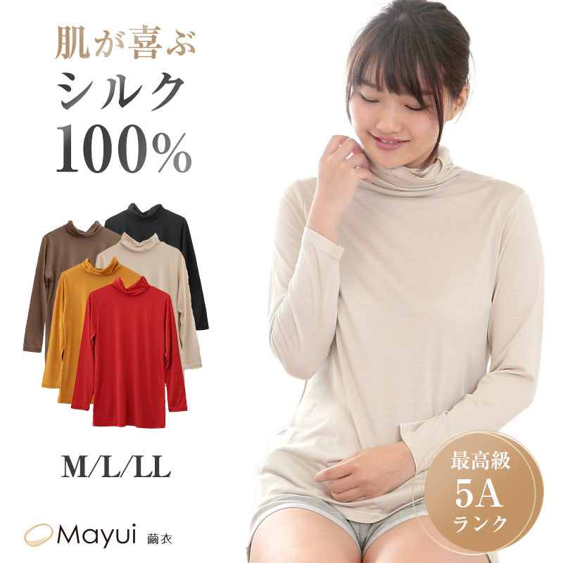 シルク タートルネック 長袖 シャツ カットソー レディース シルク100% M~LL