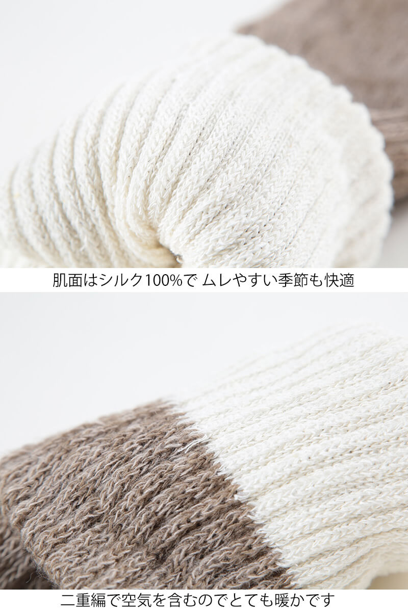 繭衣 女性用 裏シルク100% ポカポカ二重編み レッグウォーマー 総丈約45cm
