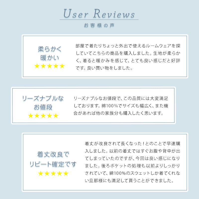 裏起毛が苦手な方や冬の静電気が気になる方にぴったり。身生地綿100%でさらっとした着心地が快適です。