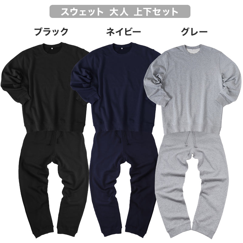 「大人用 綿100% 裏パイルスウェット 上下セット」です。