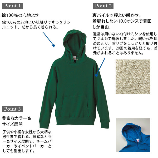 定番のシルエットで一番使いやすい、10.0オンス綿100%裏パイルプルオーバーパーカー。