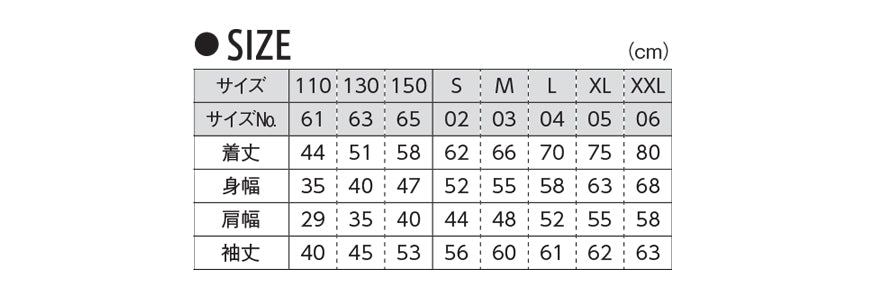 XXL(着丈:80cm/身幅:68cm/肩幅:58cm/袖丈:63cm)
