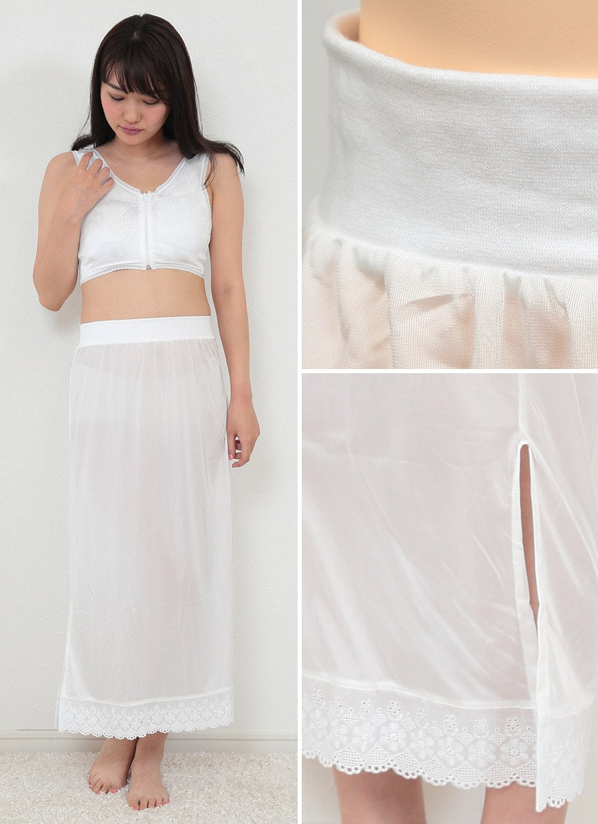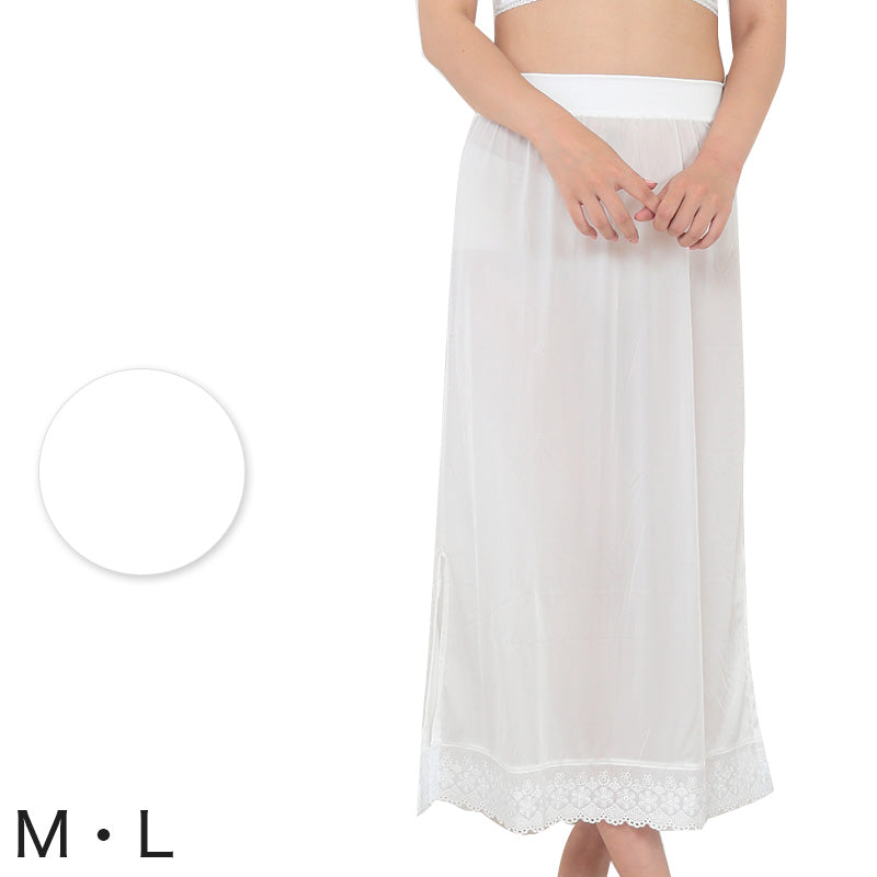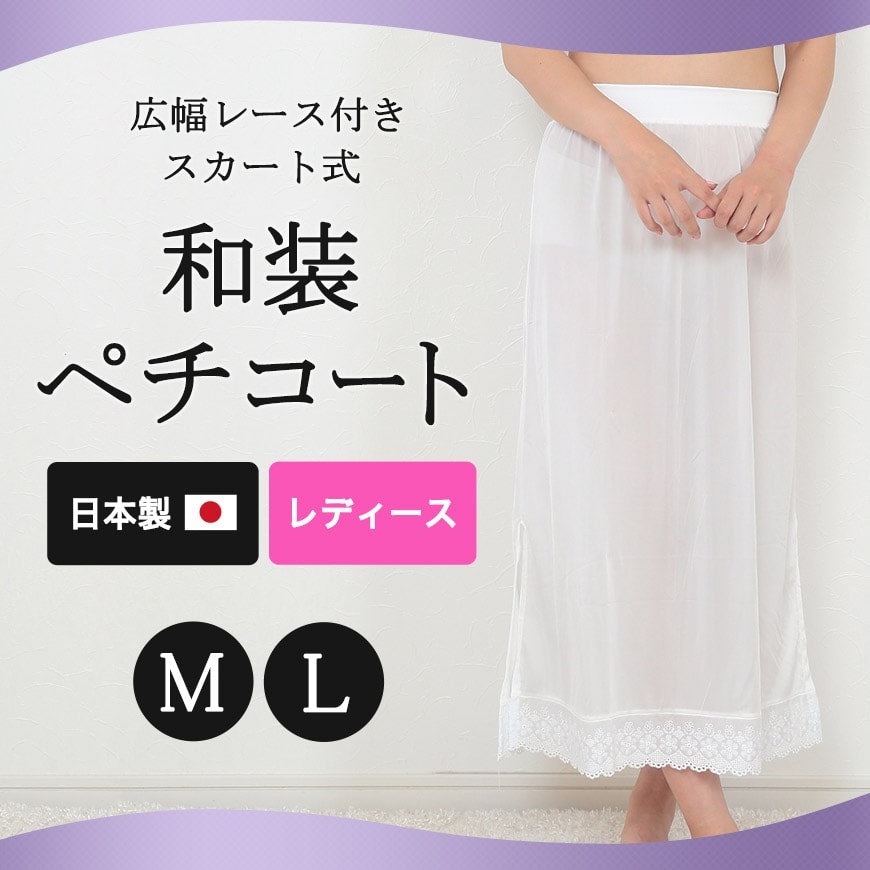 八重の下着本舗 婦人用 キュプラ 広幅レース付き スカート式 和装ペチコート M・L