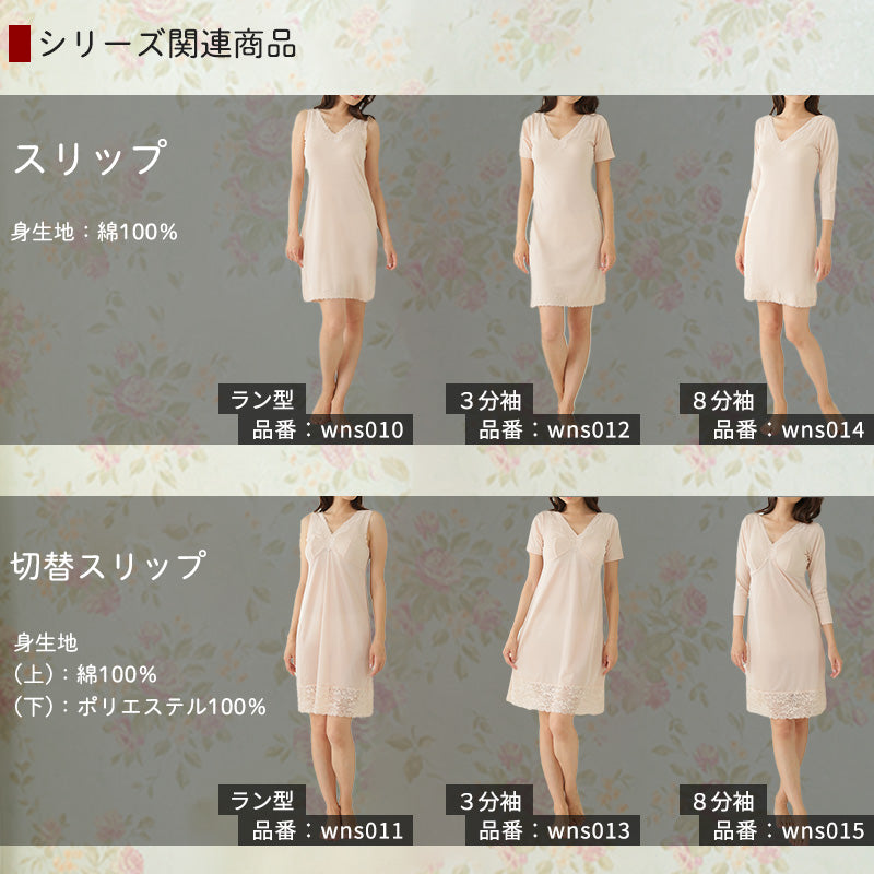 3分袖 切替スリップ 半袖 90cm丈 レディース 綿100 ランジェリー M~LL ワンピース インナー ロング 長い丈 日本製 綿100% 浴衣 下着 M L LL シュミーズ シミーズ (在庫限り)